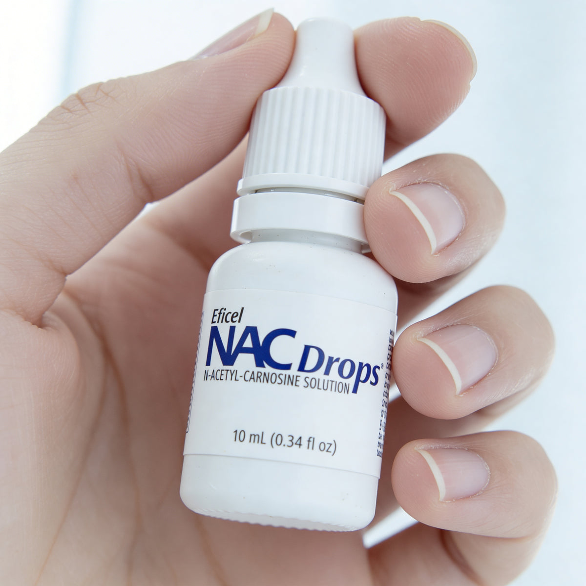 Eficel NAC Drops® is a topical delivery system of direct-to-lens application. It offers an unmatched effectiveness in comparison to oral eye care supplements. In clinical N-Acetyl-Carnosine trials 90% of treated eyes experienced an improvement in visual acuity, as one of multiple noted benefits. NAC Drops helps support and strengthen the eyes by offering a unique protection against oxidative stress and other environmental and metabolic factors.