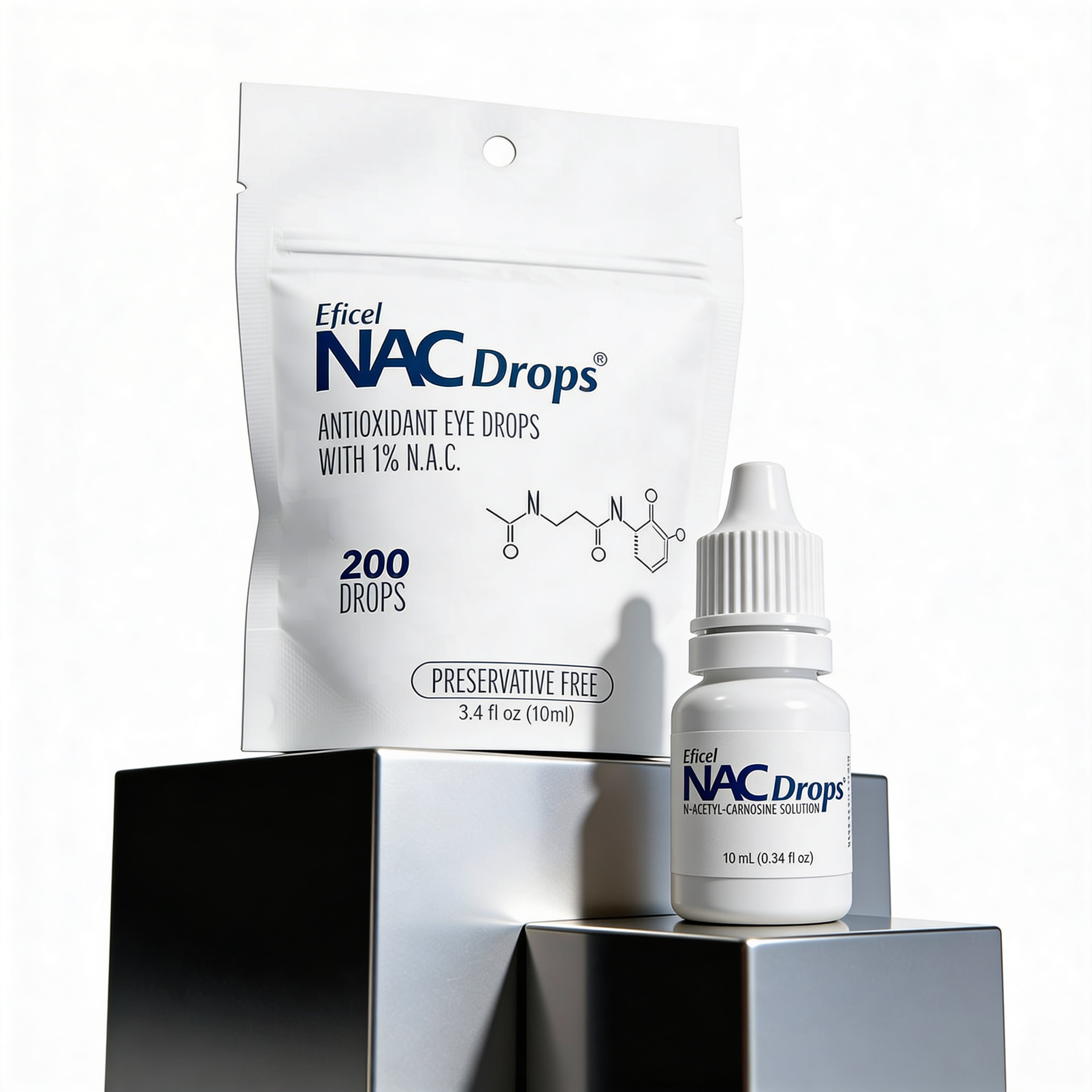 Eficel NAC Drops® is a topical delivery system of direct-to-lens application. It offers an unmatched effectiveness in comparison to oral eye care supplements. In clinical trials 90% of eyes treated with N-Acetyl-Carnosine experienced an improvement in visual acuity, as one of multiple noted benefits. NAC drops help support and strengthen the eyes by offering a unique protection against oxidative stress and other environmental and metabolic factors.